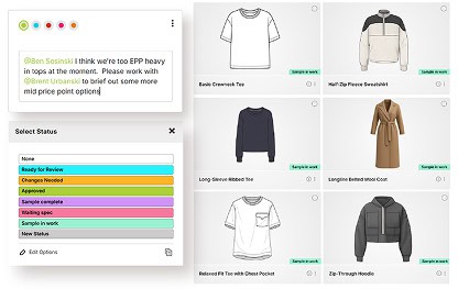 Organize sketches, swatches, photos, and 3D models into interactive boards to plan and showcase your collections, with a clear view that drives faster decisions and eliminates spreadsheets.
